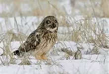 短耳鸮又名小耳木兔、田猫王、夜猫子等,是鸮形目鸱鸮科耳鸮属中小型猛禽动物。成鸟面盘显著,眼周黑色;眼先及内侧眉纹灰白色,面盘余部棕黄色杂以黑色细羽干纹;耳簇羽短小而几乎不外露,…全部>>