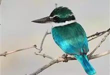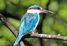 白领翡翠:有50个亚种。体长18厘米,体重35-40克。是一种蓝白色翡翠鸟。头顶、两翼、背及尾呈亮丽蓝绿色;过眼纹黑色;眼先黑色,眼眉白色或浅黄色,嘴上部具白点。以白色的颈环及下体为识别特征。…全部>>