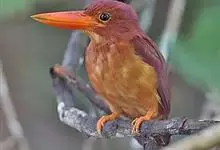 赤翡翠:是佛法僧目翠鸟科的鸟类。共有10个亚种。体长25-27厘米,体重76-77 克。头、颈、背、腰尾上覆羽、尾羽棕赤色,是翡翠亚科中分布最北的成员,虽然其主要分布区位于东南亚地区,…全部>>