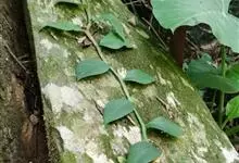 石柑子 Merr.):又名竹结草、爬山虎、巴岩香、百步藤。是单子叶植物纲、天南星科、石柑属附生藤本。茎亚木质,淡褐色,近圆柱形,具纵条纹,节上常束生长1-3厘米的气生根;分枝;叶片纸质,长6-13厘米,…全部>>
