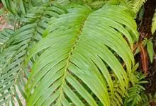 苏铁蕨是乌毛蕨科苏铁蕨属植物。根状茎粗壮,木质,直立圆柱状,直径达15厘米或更粗,高达1.5米或过之;鳞片红棕色或深棕色,有光泽,线状狭长披针形。叶簇生,叶柄禾秆色至深禾秆色,光滑或下部略粗糙,…全部>>