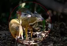 鼷鹿,别名小鼷鹿,共38个亚种。体形略比野兔大,体重1.3~2.0kg,体长420~630mm,肩高约200mm,是仅次于蹄兔目成员最小的有蹄类动物,也是鼷鹿科种体型最小的一种。面部尖长,无角,…全部>>