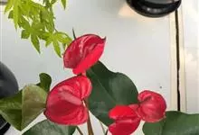 花烛,别名红鹅掌、红掌、安祖花等,为天南星科花烛属的一种多年生草本植物。其茎矮;叶互生,叶片革质,有光泽,阔心形、圆心形,先端钝或渐尖,基部深心形;肉穗花序有细长花序梗,佛焰苞深红色或橘红色,…全部>>
