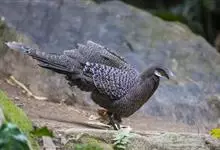 灰孔雀雉:雄鸟体长50-67厘米,体重456-710克;雌鸟体长33-52厘米,体重460-500克。雄鸟全身羽毛黑褐色,…全部>>