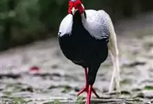 白鹇,是鸡形目雉科鹇属的一种留鸟。雄鸟上体白色并具黑色纹,下体黑色,头顶具黑色长羽冠,尾白而长;雌鸟体型较小,以橄榄褐色为主,下体具白色或皮黄色细纹;虹膜褐色,眼周具红色裸皮,喙黄色,脚鲜红色。…全部>>