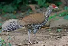 红腹角雉属于鸡形目雉科,雄鸟体羽及两翅主要为深栗红色,满布具黑缘的灰色眼状斑,下体灰斑大而色浅。雌鸟上体灰褐色,下体淡黄色,杂以黑、棕、白斑。全部>>