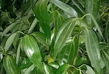 天竺桂,是樟科樟属乔木植物,枝条细弱呈圆柱形,无毛;叶近对生或在枝条上部互生,呈卵圆状长圆形或披针形,上面绿色,下面灰绿色;花序梗与序轴均无毛,花被片呈卵形;果长圆形,…全部>>