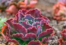 高砂之翁是景天科,拟石莲花属的多肉植物。特征是其边缘呈大波浪卷形的宽大叶片,颜色随光照变化从蓝紫到橙红变幻不定,是一种具有别样魅力的拟石莲品种。是杂交种而非栽培变种。最早在日本被培育。…全部>>
