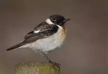 黑喉石鵖,雀形目鹟科石鵖属小型鸣禽,俗名谷尾鸟、黑喉石。其体色为黑褐色。雄鸟头部、背部、两翼及尾黑色,颈侧及翼上具白斑,胸部和腹侧红棕色,腰及尾下覆羽白色。雌鸟体色为褐色,上体具深色纵纹,胸部染棕色,…全部>>