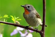 红喉姬鹟小型鸟类,体长11~13厘米。雄鸟上体灰黄褐色,眼先、眼周白色,尾上覆羽和中央尾羽黑褐色,外侧尾羽褐色,基部白色。颏、喉繁殖期间橙红色,胸淡灰色,其余下体白色,非繁殖期颏、喉变为白色。…全部>>