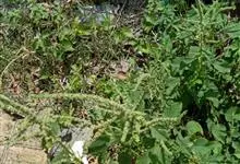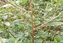 反枝苋是苋科苋属的一年生草本植物。株高达1米;茎密被柔毛;叶菱状卵形或椭圆状卵形,先端锐尖或尖凹,两面及边缘被柔毛,下面毛较密;穗状圆锥花序,顶生花穗较侧生者长;花被片长圆形或长圆状倒卵形,…全部>>