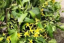 千里光是菊科千里光属多年生攀援草本植物。千里光的茎呈细圆柱形,整体为之字形,分枝多,表面灰绿色或黄棕色,有灰白色柔毛;叶子为长三角形,有细小的裂缝或羽毛状浅裂,叶柄有少量的柔毛;花瓣呈长椭圆形,黄色,…全部>>