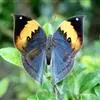 枯叶蛱蝶,又名木叶蝶、树叶蝶等,属于蛱蝶科。翅正面黑褐色,具深蓝色光泽,前翅顶角尖出,顶区有1枚小白点,中部有1条倾斜的橙色斑带,从前缘延伸至Cu室外缘,u室中部有1枚黑色圆斑,…全部>>
