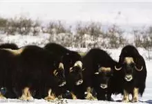 麝牛,是偶蹄目牛科麝牛属哺乳动物。麝牛体型大,但低矮粗壮,头大,吻部宽,眼小;雌雄均具角,四肢短粗,蹄宽大;毛被厚,极耐寒,尾短。雄麝牛在发情时会散发出一种类似麝香的气味,又称麝香牛。…全部>>