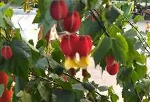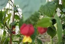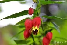 红萼苘麻是锦葵科、苘麻属常绿软木质灌木,叶绿色,长5-10厘米,心形,叶端尖,叶缘有钝锯齿,有时分裂,有细细的叶柄;叶互生,掌状叶脉;花单生于叶腋,具长梗,下垂;花萼红色,半套着大约4厘米长的花瓣,…全部>>