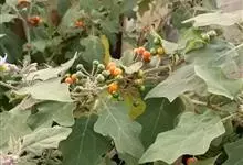 刺天茄,是茄科茄属的多年生草本植物。茎直立,枝条有刺;叶片大,互生,卵形或椭圆形,有长柄,叶面有短柔毛;花单生于枝顶,外面密被星状绒毛及细直刺,果被星状毛及直刺,浆果球形,光亮,…全部>>