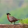 红腹角雉属于鸡形目雉科,雄鸟体羽及两翅主要为深栗红色,满布具黑缘的灰色眼状斑,下体灰斑大而色浅。雌鸟上体灰褐色,下体淡黄色,杂以黑、棕、白斑。全部>>
