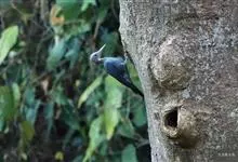 白腹黑啄木鸟,是啄木鸟科、黑啄木鸟属的中型鸟类,体长43-46厘米,头顶具长的红色羽冠,颚纹亦为红色,其余头、颈、胸和上体黑色,腰和腹白色,飞翔时白色腋羽和翅下覆羽亦明显可见。雌鸟头顶黑色,…全部>>