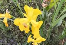黄花鸢尾:多年生草本,植株基部有老叶残留的纤维。根状茎粗壮,斜伸;须根黄白色,少分枝,有皱缩的横纹。叶基生,灰绿色,宽条形,有3-5条不明显的纵脉。花茎中空,高50-60厘米,…全部>>