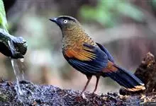 蓝翅噪鹛:噪鹛科、彩翼噪鹛属动物。中型鸟类,体长22-25厘米。上体棕橄榄褐色密被黑色鳞状斑,眼蓝白色,眼上有一长而宽阔的黑色眉纹,从眼先直到颈侧。下体棕褐色被黑色鳞状斑;尾上和尾上覆羽栗色,…全部>>