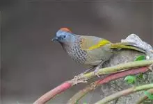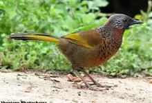 蓝翅噪鹛:噪鹛科、彩翼噪鹛属动物。中型鸟类,体长22-25厘米。上体棕橄榄褐色密被黑色鳞状斑,眼蓝白色,眼上有一长而宽阔的黑色眉纹,从眼先直到颈侧。下体棕褐色被黑色鳞状斑;尾上和尾上覆羽栗色,…全部>>