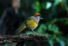 红头噪鹛中型鸟类,体长22~28厘米。头顶棕红色,眼先、脸、颏、喉黑色,上体橄榄色或棕橄榄褐色,外侧飞羽金黄色,尾羽基部亦为金黄色,下体多为暗橄榄褐色。该种和赤尾噪鹛较为相似,…全部>>