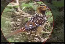 大噪鹛:中型鸟类,体长32-36厘米。额至头顶黑褐色,背栗褐色满杂以白色斑点,斑点前缘或四周还围有黑色。初级覆羽、大覆羽和初级飞羽具白色端斑。尾特长,均具黑色亚端斑和白色端斑。颏、喉棕褐色,…全部>>