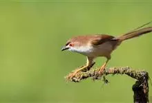 金眼鹛雀是莺科、鹛雀属小型鸟类。体长16-20厘米。头顶和上体棕褐色,两翅表面肉桂红色,尾褐色具明暗相间横斑。眼周金黄色,眼先、眼上、眼下、颊以及颏、喉和上胸概为白色,其余下体茶黄色,脚橙黄色。…全部>>
