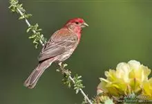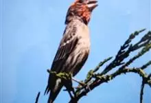 普通朱雀是雀形目雀科朱雀属鸟类,又名红朱雀、马料、青麻料。雄鸟上体红色,下体淡红色;头部、喉部、胸部及腰部亮红色;背部褐色染红色;两翼及尾黑褐色,羽缘染红色。雌鸟上体橄榄褐色,下体近白色,…全部>>