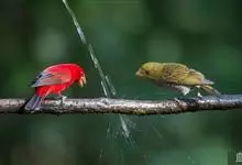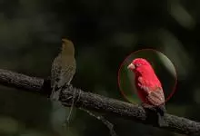 普通朱雀是雀形目雀科朱雀属鸟类,又名红朱雀、马料、青麻料。雄鸟上体红色,下体淡红色;头部、喉部、胸部及腰部亮红色;背部褐色染红色;两翼及尾黑褐色,羽缘染红色。雌鸟上体橄榄褐色,下体近白色,…全部>>
