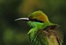 绿喉蜂虎是佛法僧目、蜂虎科的小型鸟类,共有9个亚种。身长22-25厘米,翼展29-30厘米,体重15-20克。喉绿色,额部、头顶至上背为锈红色,其余上体均为亮绿色。中央尾羽延长且端段狭细,…全部>>