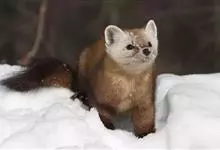 紫貂:体长约40厘米,体重约1千克,尾长12厘米,寿命8-15年左右。属中小型兽类,躯体细长,四肢较短。头形狭长,耳短而圆,嗅觉、听觉灵敏。犬齿较发达,裂齿较小;上臼齿横列,…全部>>