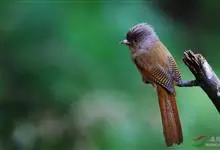 栗额斑翅鹛是噪眉科、斑翅鹛属中型鸟类,体长20-23厘米。头顶具浓密的羽冠,前额栗棕色,头顶灰褐色。上体棕褐色,两翅棕褐色具黑色横斑,翅基外缘有一黑斑,尾呈凸状,棕褐色具黑色横斑。下体棕褐色,…全部>>