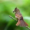 凤头鹀:属小型鸣禽,体重21-31克,体长134-175毫米。以头顶的细长羽冠为特征,雄鸟全身几乎均为黑色具蓝色光泽,两翅和尾以及尾上覆羽栗红色。雌鸟具短的褐色羽冠,上体暗橄榄褐色,…全部>>