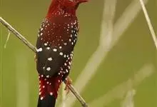 红梅花雀小型鸟类,体长9-10厘米。雄鸟通体朱红色,背、肩、胸等满布白色小斑点,两翅和尾黑褐色均具白色端斑,嘴红色,脚蜡黄色。雌鸟上体淡褐色或赭褐色,翅上中覆羽、大覆羽和内侧飞羽末端具白色斑点,…全部>>