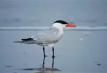 红嘴巨鸥,大型水鸟,体长47~55厘米。夏羽前额、头顶、枕和冠羽黑色。后颈、尾上覆羽和尾白色,尾呈叉状。背、肩和翅上覆羽银灰色。眼先和眼及耳羽以下头侧白色;颏、喉和整个下体也为白色。冬羽和夏羽大致相似,…全部>>