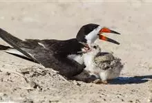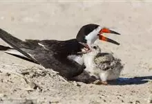 剪嘴鸥:是鸟纲、剪嘴鸥科的中型水鸟,体长40-43厘米。嘴粗,长而侧扁,基部较宽。下嘴较上嘴显著为长。嘴的颜色为橙红色,尖端黄色,脚短,红色。头顶至枕黑色。嘴基、颊、后颈和整个下体白色,上体和翅黑褐色,…全部>>