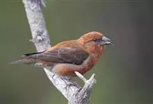红交嘴雀:体重28-48克,体长145-175毫米。是燕雀科交嘴雀属的鸣禽。是一种小型的燕雀。雄鸟通体砖红色,上体较暗,腰鲜红色;翼和尾近黑色,头侧暗褐色;雌鸟暗橄榄绿或染灰色,…全部>>