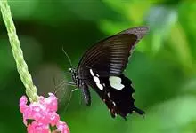 美凤蝶又名多型蓝凤蝶、大凤蝶,是鳞目凤蝶科凤蝶属动物。美凤蝶雄蝶无尾突,翅黑色,正面各翅室中部有深色条纹,分布蓝色鳞片,反面前后翅基部有红斑,后翅臀角有环状红斑。雌蝶具多型,前翅浅灰色,外缘和翅脉黑色,…全部>>
