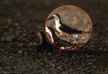 剪嘴鸥:是鸟纲、剪嘴鸥科的中型水鸟,体长40-43厘米。嘴粗,长而侧扁,基部较宽。下嘴较上嘴显著为长。嘴的颜色为橙红色,尖端黄色,脚短,红色。头顶至枕黑色。嘴基、颊、后颈和整个下体白色,上体和翅黑褐色,…全部>>