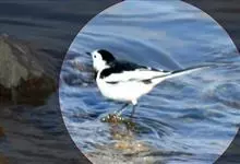 日本鹡鸰:体长约20厘米。上体多黑色,额、颏及眉纹白,下体白,两翼黑而具白色横斑及羽缘,尾黑而边缘白色。虹膜深褐色;嘴黑色;脚黑色。飞行时发出嘁喳声,具复杂而独特的鸣声。喜农田、稻田和溪流。…全部>>
