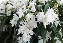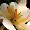 姜花又名野姜花。是姜科姜花属的多年生草本植物,茎高1-2米;叶片长圆状披针形或披针形,叶面光滑,叶背被短柔毛;穗状花序顶生,椭圆形,花芬芳,白色;蒴果卵状三棱形,微黄绿色;种子鲜红色,具橘红色的假种皮。…全部>>