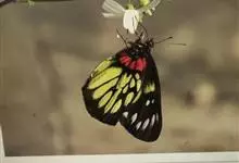 报喜斑粉蝶是粉蝶科斑粉蝶属的一种动物,又名红肩粉蝶、藤粉蝶等。幼虫群集性很强,从同一卵块孵化出的幼虫,幼龄期全部群集在一起取食,高龄幼虫常分散成小群。幼虫群集危害叶片,造成秃枝,严重者可将树吃成光杆,…全部>>