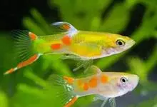 孔雀鱼,是鳉形目花鳉科花鳉属鱼类。孔雀鱼体形修长,其形态变化主要在尾鳍,常见的尾鳍形态有圆尾、尖尾、铲尾等。雌、雄鱼差别明显,雄鱼的大小只有雌鱼的一半左右,雄鱼体色丰富多彩,尾部形状千姿百态。…全部>>