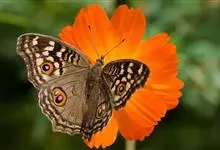 美眼蛱蝶为鳞翅目、蛱蝶科、眼蛱蝶属节肢动物。除西北外,全国各地均有分布,国外分布于日本及东南亚。幼虫以马鞭草科的过江藤、车前草科的车前草等为食。全部>>