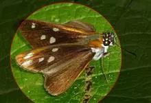 姜弄蝶 Udaspes folus ,又叫银斑姜蝶。幼虫吐丝粘叶成苞,隐藏其中取食,受害叶呈缺刻或在1/3处断落,…全部>>