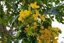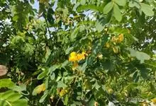 黄槐 H. S. Irwin et Barneby)为豆科,决明属植物。落叶小乔木或灌木状。羽状复叶,倒卵状椭圆形,先端圆。基部稍偏斜;叶轴下部2或3对小叶之间有一棒状腺体。花大,鲜黄色,种子间有时…全部>>