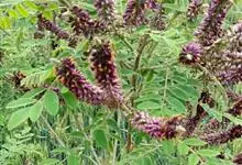 紫穗槐是豆科紫穗槐属落叶灌木植物。紫穗槐小枝幼时密被短柔毛,后渐变无毛;小叶卵形或椭圆形;穗状花序顶生或生于枝条上部叶腋,花冠紫色;荚果长圆形,成熟时棕褐色;花果期5-10月。…全部>>
