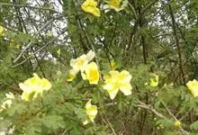 黄木香花 Rehd.)是蔷薇科、蔷薇属植物,为木香花的变型品种,攀缘小灌木,高可达6米。小叶3-5枚,稀7枚,小叶片椭圆形或长圆状披针形,先端急尖或稍钝,基部近圆形或宽楔形,边缘有紧贴细锯齿。花小型,…全部>>