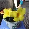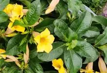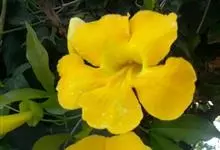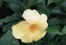 大花软枝黄蝉是软枝黄蝉的一个变种,夹竹桃科黄蝉属植物。藤状灌木,长达4米,枝条软弯垂,具白色乳汁。叶纸质,椭圆形、卵圆形或倒卵形,花序着花4-5朵,花冠比原变种大形,橙黄色,花冠喉部具5个发亮的斑点…全部>>
